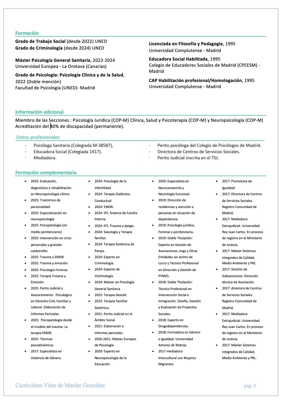 Especialista en Victimología y Criminología (Universidad Antonio de Nebrija).